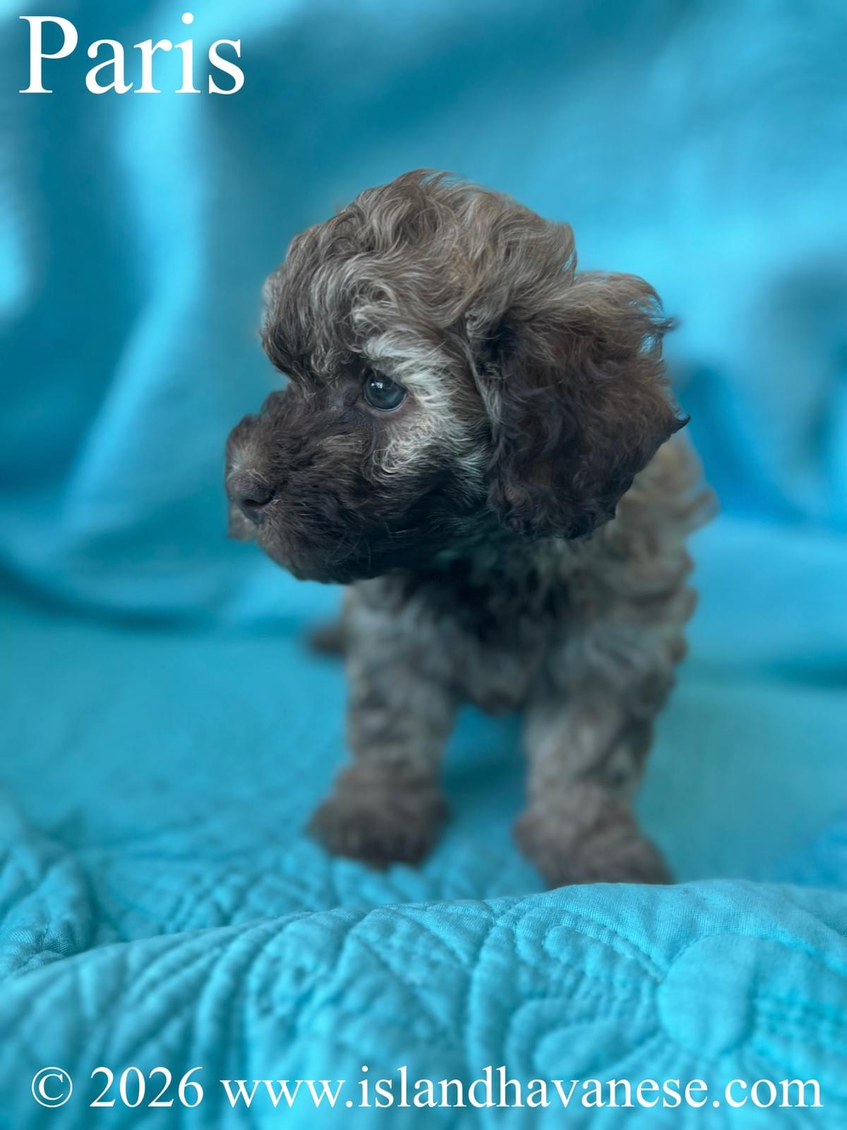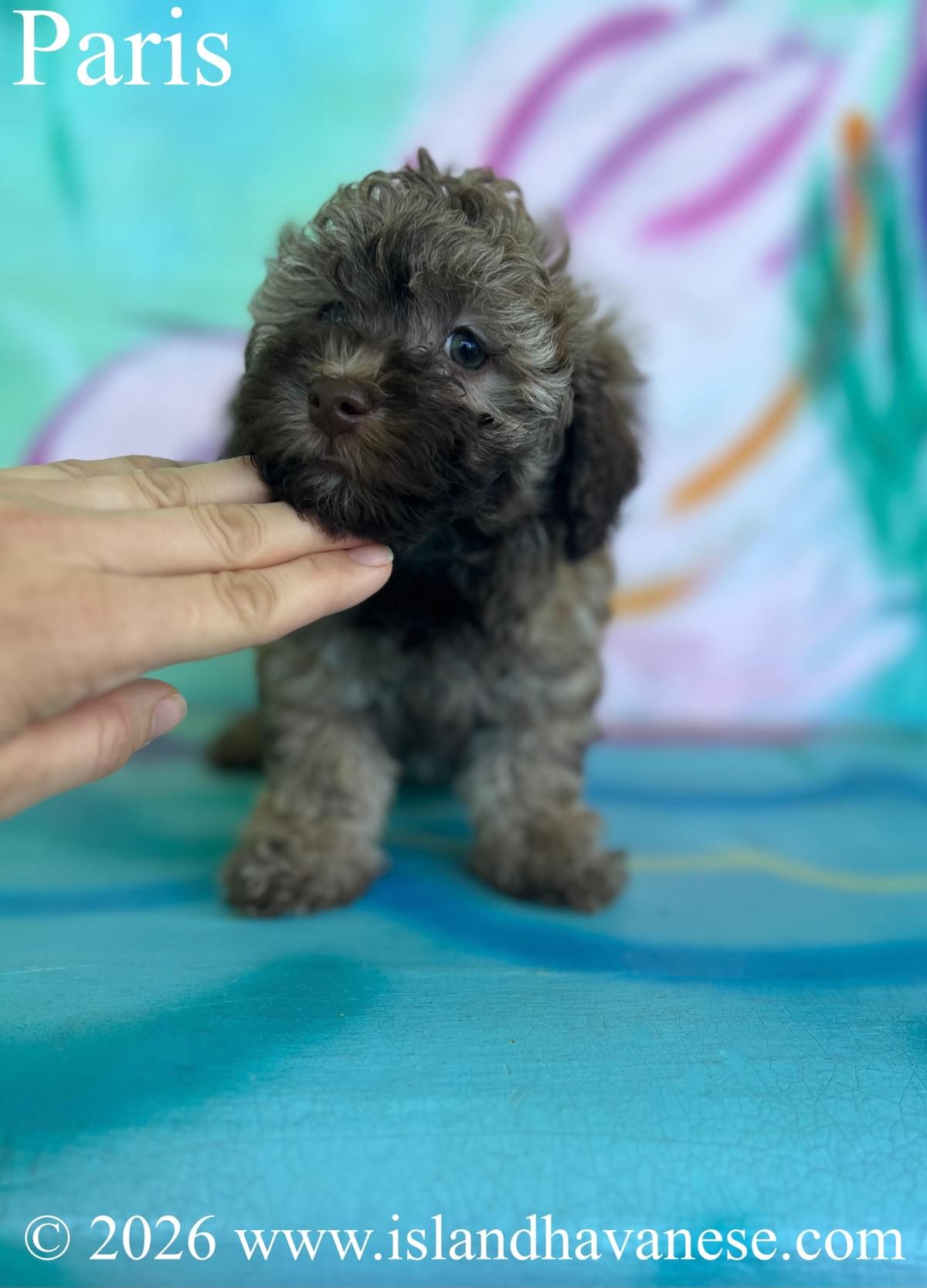 Nutella is a chocolate and tan Havanese with chocolate coloring and tan points