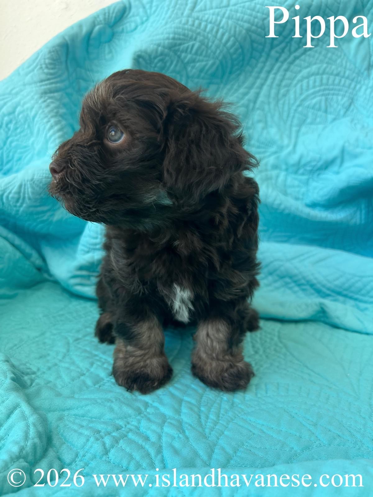 Reeses is a chocolate and tan Havanese with chocolate coloring and tan points